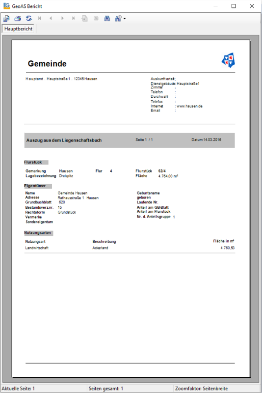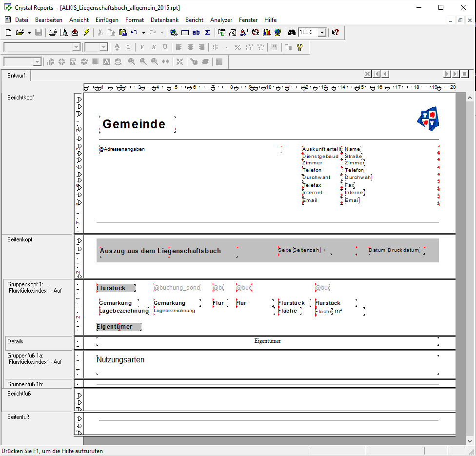 Reportvorlage (Muster für ALKIS-Daten) (mit Crystal Reports erstellte Vorlagen haben die Dateiendung *.rpt)