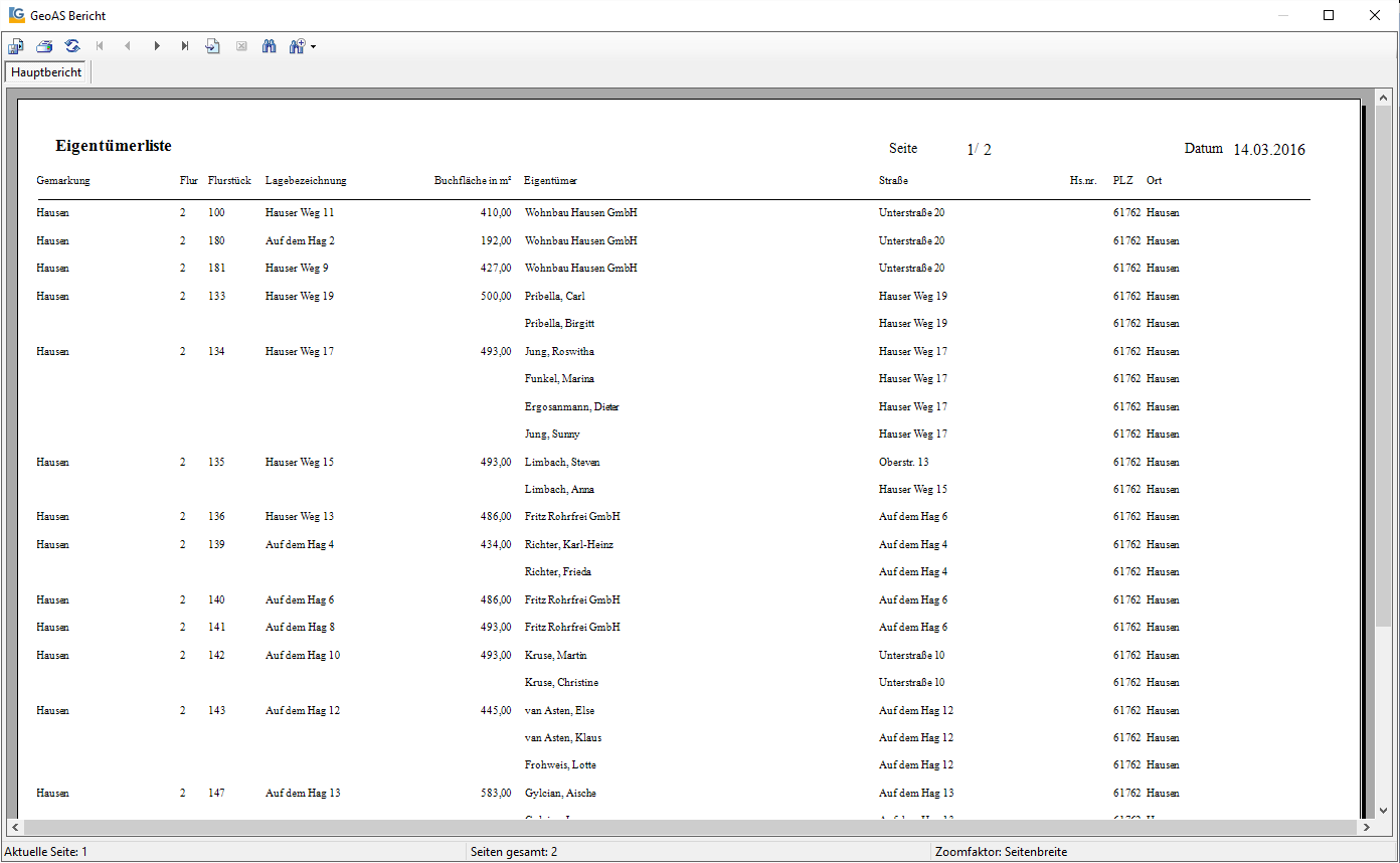 Selektieren Sie vorab ein oder mehrere Flurstücke, öffnen Sie die Karteikarte und aktivieren Sie die Schaltfläche Report .