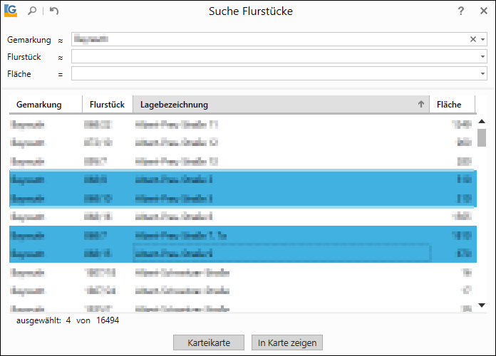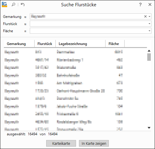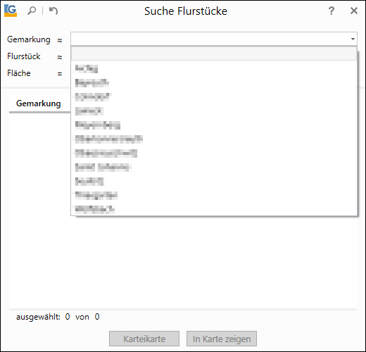 Um nach einem bestimmten Objekt zu suchen (z.B. Flurstück oder Eigentümer), haben Sie folgende Möglichkeiten: