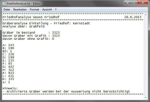 Beispiel: Friedhof Kernstadt wird nach Grabfeldern analysiert: