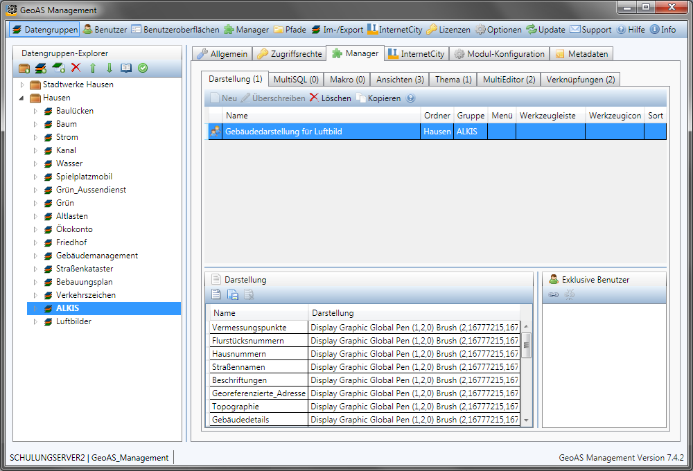 Eine detaillierte Funktionsbeschreibung der verschiedenen Manager finden Sie in der Hilfe von GeoAS Project.