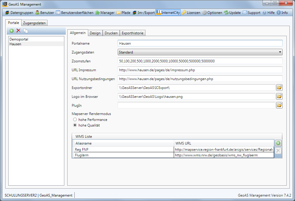 Selbst für ein neues Portal ist kein manueller Eingriff auf dem Web-Server erforderlich. Das GeoAS Management übernimmt alle erforderlichen Einstellungen.