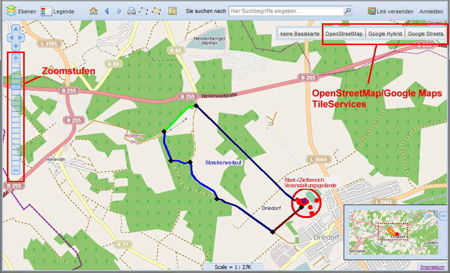 Sofern TileServices von Google Maps und/oder OpenStreetMap genutzt werden, kommen deren Zoomstufen zur Anwendung.