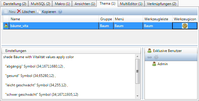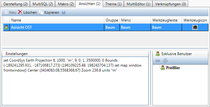 Der Administrator kann die Exklusivität erweitern und weitere Benutzer zuordnen. Er kann aber auch die Exklusivität aufheben, indem er alle zugeordneten Benutzer entfernt. Somit haben alle GeoAS-Benutzer ein Zugriffsrecht.