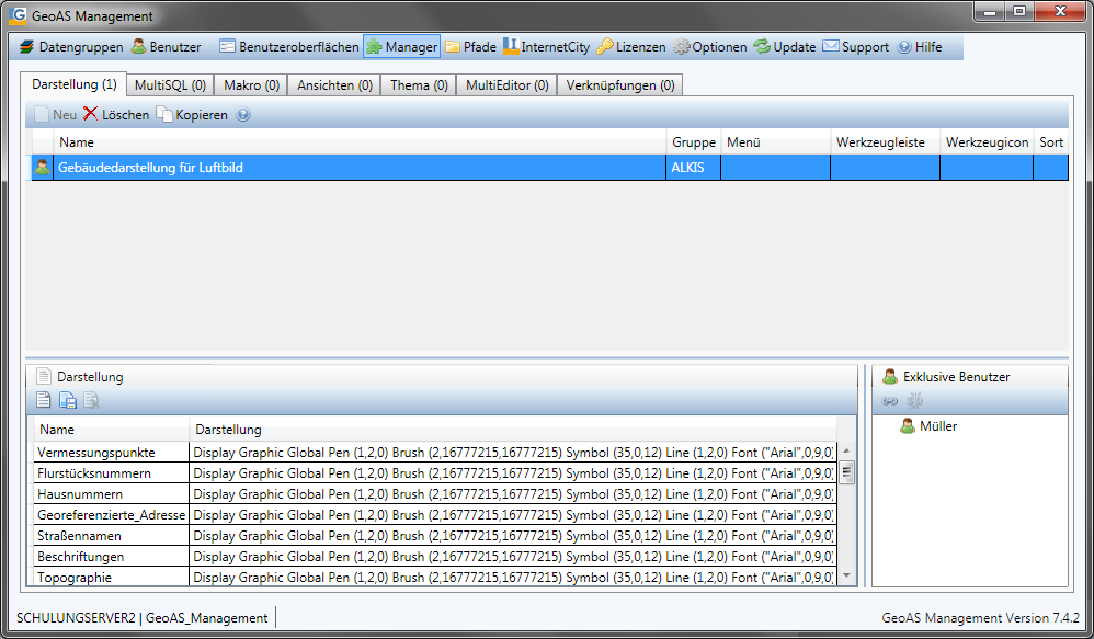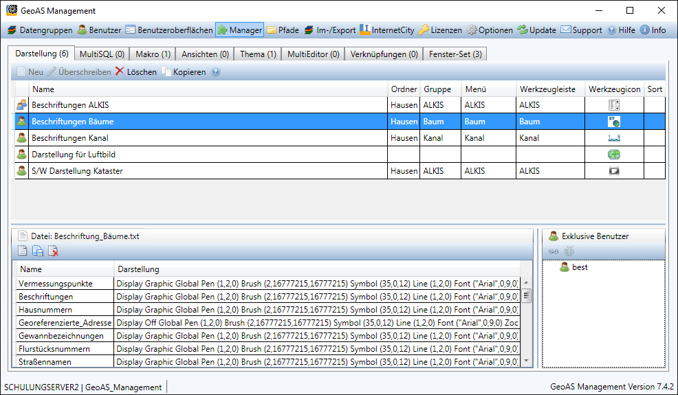 Die GeoAS Manager erweitern die GeoAS Werkzeuge um zusätzliche individuelle Funktionen. Es gibt zwei Arten, um Managerfunktionen zu verwalten: