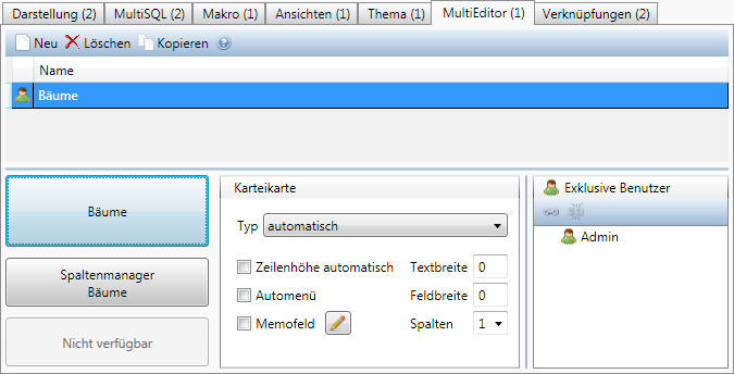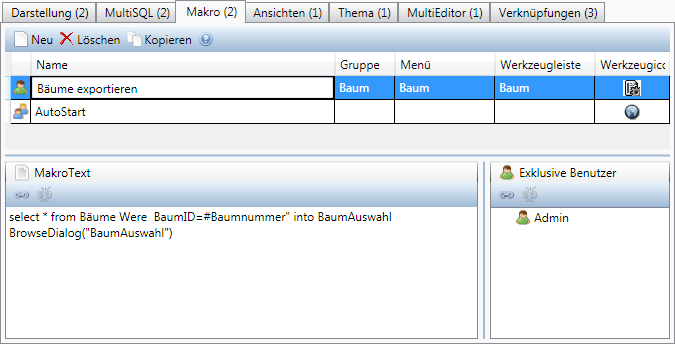 Jede Manager-Funktion ist Benutzern zugeordnet. Prinzipiell gilt, dass der Ersteller einer Managerfunktion darauf ein exklusives Recht hat. Kein anderer Benutzer kann auf die Funktion zugreifen.